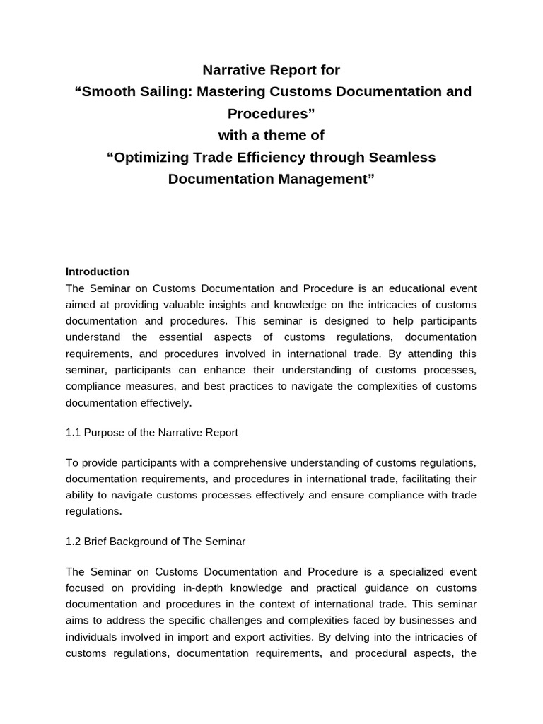 Overall, the Seminar on Customs Documentation and Procedure plays a crucial role
