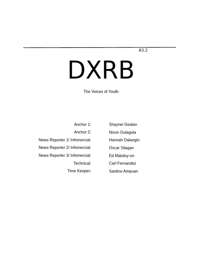 15. Anchor 1 & 2: This is DXRB 83.2, Voice of Youth.