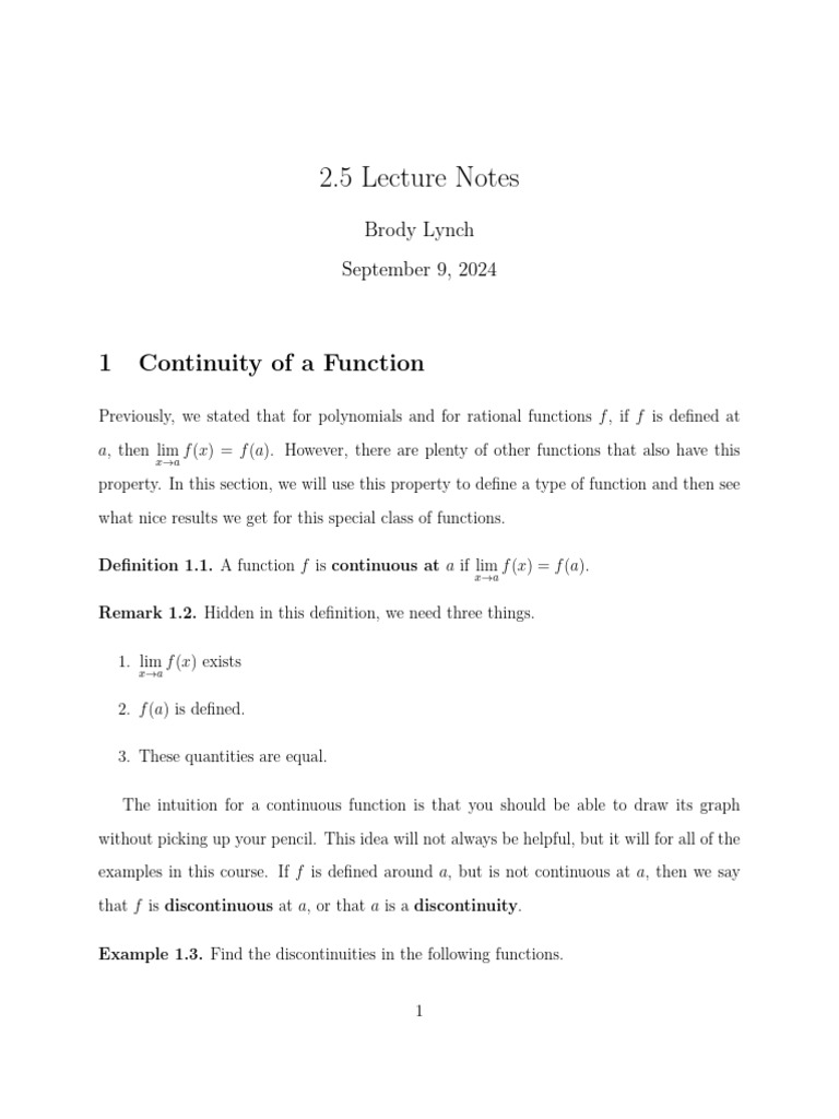 1 Continuity of a Function