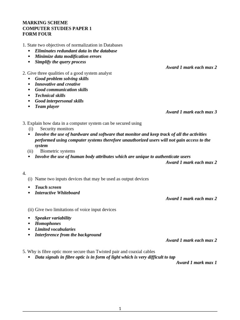 COMPUTER STUDIES PAPER 1