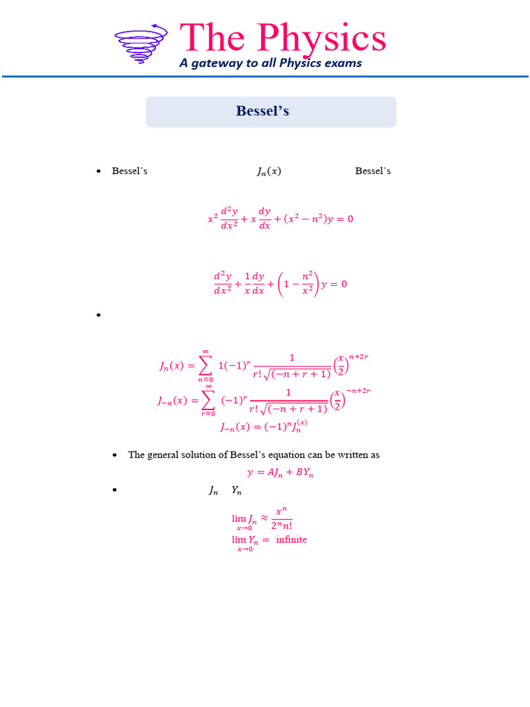 Bessel’s polynomials, denoted by 𝐽𝑛 (𝑥), are solutions to Bessel’s differential