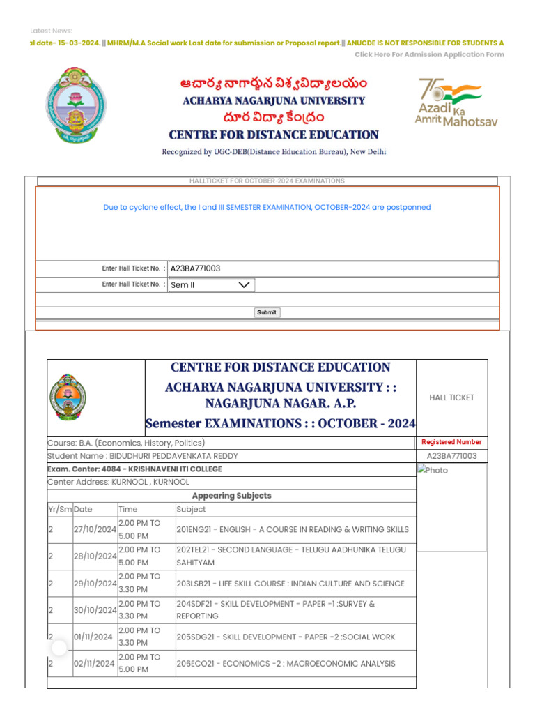 HALLTICKET FOR OCTOBER-2024 EXAMINATIONS