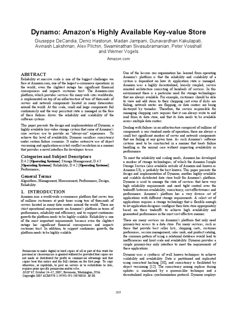 gained by running Dynamo in production and Section 7 concludes widely acknowledged by both the industry and academia [5].