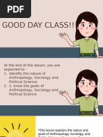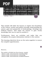 II. CONTENT / TOPIC Nature, Goals and Perspective in/of Anthropology, Sociology and Political Science