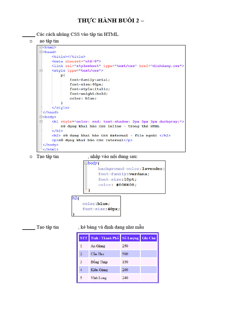 Bài 1: Các cách nhúng CSS vào tập tin HTML.