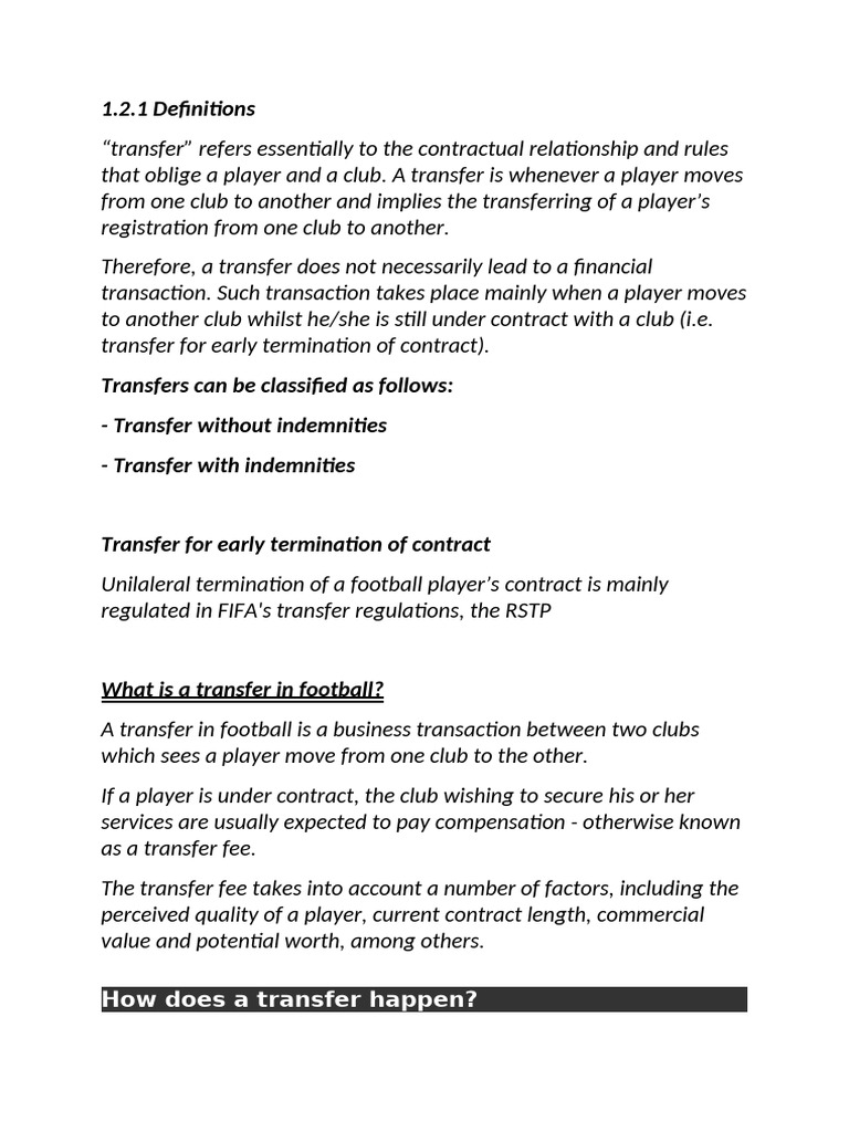 from one club to another and implies the transferring of a player’s