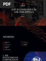 A pioneer in geothermal energy industry involved in the exploration and production of water-based steam power to generation of electricity for commercial use. Engaged in the management, operation and development of container terminals in Asia, Europe, Middle East, Africa and the Americas Develops, operates and franchises quick-service restaurants in the Philippines and overseas under the brand name Jollibee, Chowking, Greenwich, Delifrance, Manong Pepe's and Red Ribbon Bakeshop, Inc. One of the largest Philippine banks providing deposit products, loans and trade finance, domestic and foreign fund transfers, treasury, foreign exchange, trading and remittances and trust services. Holding company for investments in real estate and infrastructure projects such as water utilities, toll operations, healthcare, power, port, and others. Holds exclusive rights for water delivery, sewerage and sanitation services under a 25-year concession agreement to 6Million residential, commercial and industrial customers. The holding company of the SM Group of Companies engaged shopping mall development, retail, financial services, real estate development and tourism and hotels and conventions. Engaged in developing and operating modern shopping centers with over 40 SM Supermalls in the Philippines and three SM supermalls in China. Leading telecommunications provider in the Philippines with three principal business groups fixed line, wireless, and information and communication technology. Leading branded convenience food and beverage company in the Philippines, and a major player in the Southeast Asian region and greater China.
