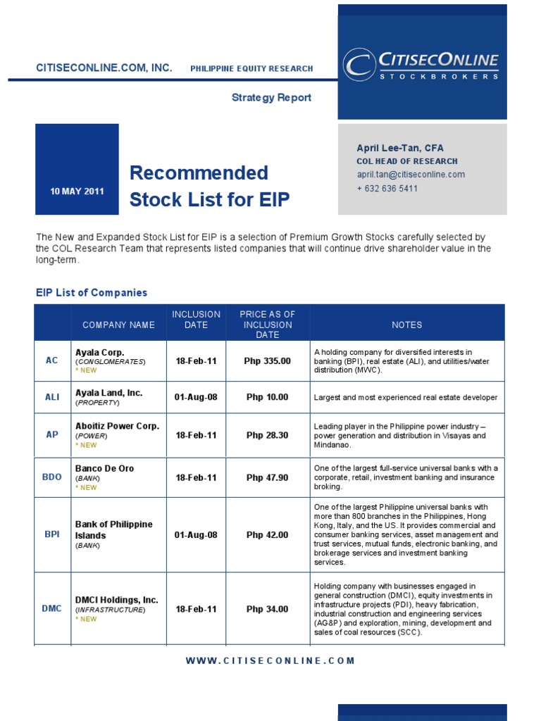 Recommended Stock List for EIP