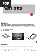 10.3 Power Screws Power screws, sometimes called linear actuators or translation screws, are used to convert rotary motion of either the nut or the screw to relatively slow linear motion of the mating member along the screw axis. The purpose of many power screws is to obtain a great mechanical advantage in lifting weights, as in screw type jacks, or to exert large forces, as in presses and tensile testing machines, home garbage compactors, and C-clamps. The purpose of others, such as micrometer screws or the lead screw of a lathe, is to obtain precise positioning of the axial movement.