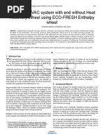The choice of desiccant is the key element in the enthalpy wheel technology. Silica gel, activated alumina and molecular sieves are the desiccants currently being offered on enthalpy wheels. Molecular sieves have a relatively higher sorption capacity at low concentration levels of water vapour, which does not increase significantly with increase in relative humidity. However the decrease in adsorption capacity of molecular sieve with increase of temperature is much smaller compared to the other two desiccants. Both silica gel and activated alumina have adsorption capacity twice as much as molecular sieve at 100% RH. These characteristics influence wheel design and determine moisture transfer effectiveness of the wheel at different temperature and humidity conditions of the two air streams. While selecting the enthalpy wheels for any application, therefore, the following points should be carefully scrutinized: choice of desiccant, selectivity, flute dimension, purge sector, seal arrangement, efficiencies, pressure drops, structural strength of the rotor. Though manufacturers give detailed data on performance, which should be consulted for a given application, there are a few other characteristics of the manufacturing process which must be known to make a wiser choice. 4.1.2 Advantages of New Generation Heat Wheels . . . . . . . . . What You Dont See! 1. Desiccant technology, in the recent years has made considerable advancements and wheels are currently available coated with desiccants with the distinguishing features, such as : * Desiccants with high diffusion rates * Desiccants with selective adsorption characteristics * Desiccant mixtures which combine high diffusivity with selectivity. * Desiccants which are adhered to substrate using water based/non masking adhesives with pollution control considerations. 2. High quality substrate webs utilising simultaneous double sided coating methods. 3. Structural rigidity of the honeycomb media/matrix by using state-of-the-art surface winding techniques in place of centre winding techniques. 4. Highly polished and finished surfaces enabling distortion free production of large diameter rotors for use with contact less seals. These very recent 1995 developments, in manufacturing techniques, have enabled the new generation rotors to have all advantages of the previous wheels plus more to provide the best recoveries, rigidity and reliability, with minimum pressure drops. 4.1.3 Integrating The Enthalpy Wheel in HVAC ? Current ventilation standard can be met or exceeded with minimal energy cost impact. Systems The most widespread application of air is dehumidified by wheel. a result, enthalpy (heat) wheels is for preconditioning ? Incoming outsideare maintainable, thus, the desiccant growth Asmould, indoor humidities retarding the of fresh outside air before it is introduced to a mildew and other microbial contamination. building. The system can easily be tapped into an ? Need for cooling capacity (30~50% of system capacity) required to dehumidify and cool outside air is eliminated. existing ventilation system. Operating in ? In the winter, wheel systems can preheat and humidify incoming cold dry air. virtually any climate zone, a single desiccant ? Recovers 80% of the heating or cooling energy that is exhausted from a building, thus, the cost of fresh air ventilation is reduced. Annual savings can wheel operated with just a small motor to rotate range from US$1 to $2 annually for each of fresh air ventilation. the wheel can deliver fresh air on a year round ? The system has an immediate payback. In retrofit applications, where basis that is generally within 3-7 degrees and cooling capacity is already in place, payback would typically take place in 1 to 3 years. 10% RH of inside conditions, regardless of what outside conditions are (without any type of