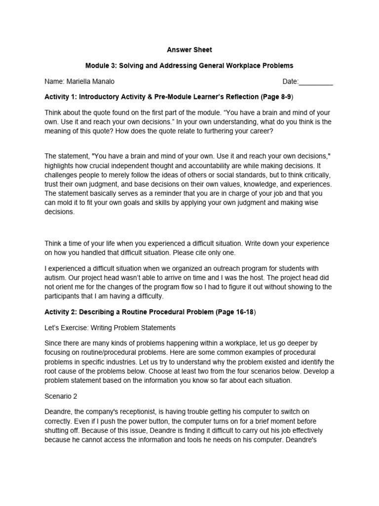 Activity 2: Describing a Routine Procedural Problem (Page 16-18)