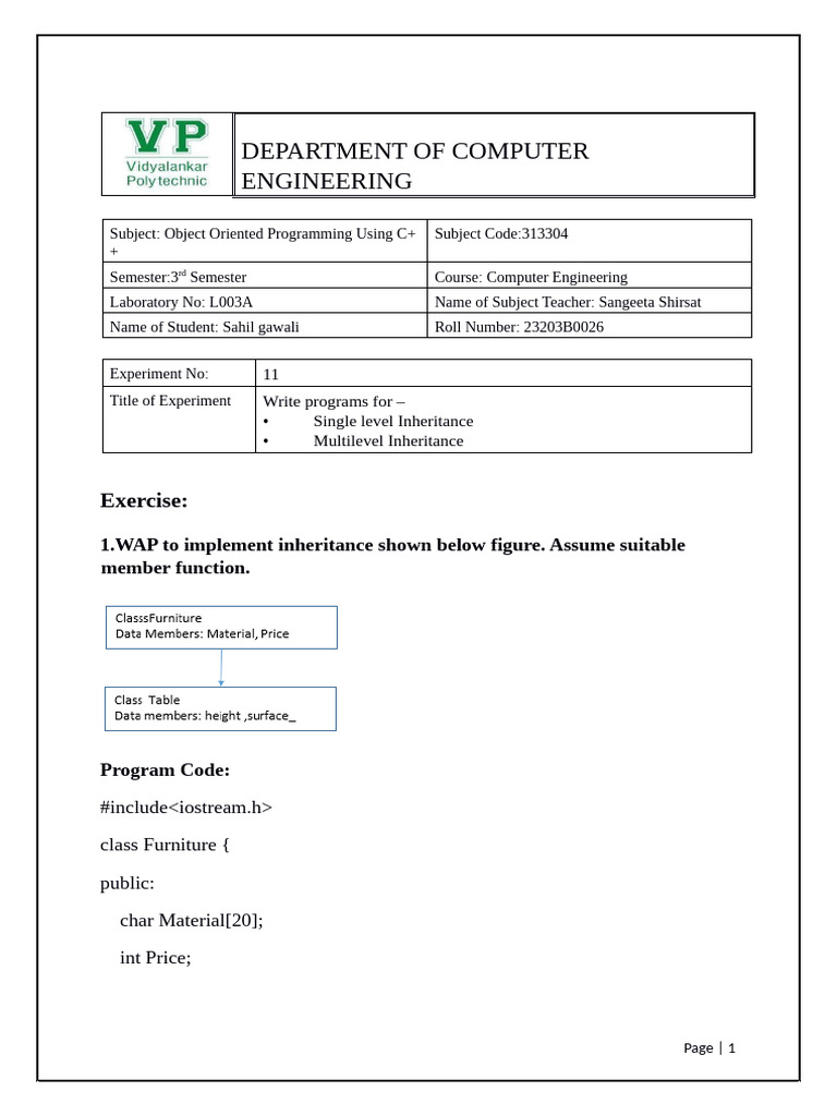 Subject: Object Oriented Programming Using C+ Subject Code:313304