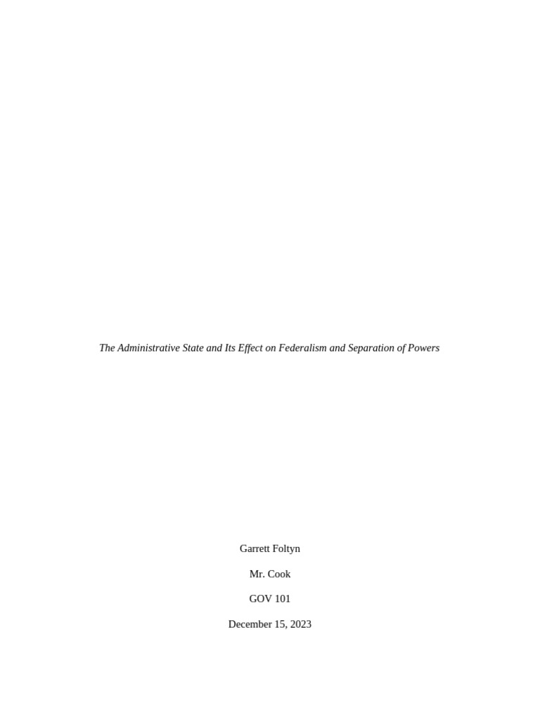 The Administrative State and Its Effect on Federalism and Separation of Powers
