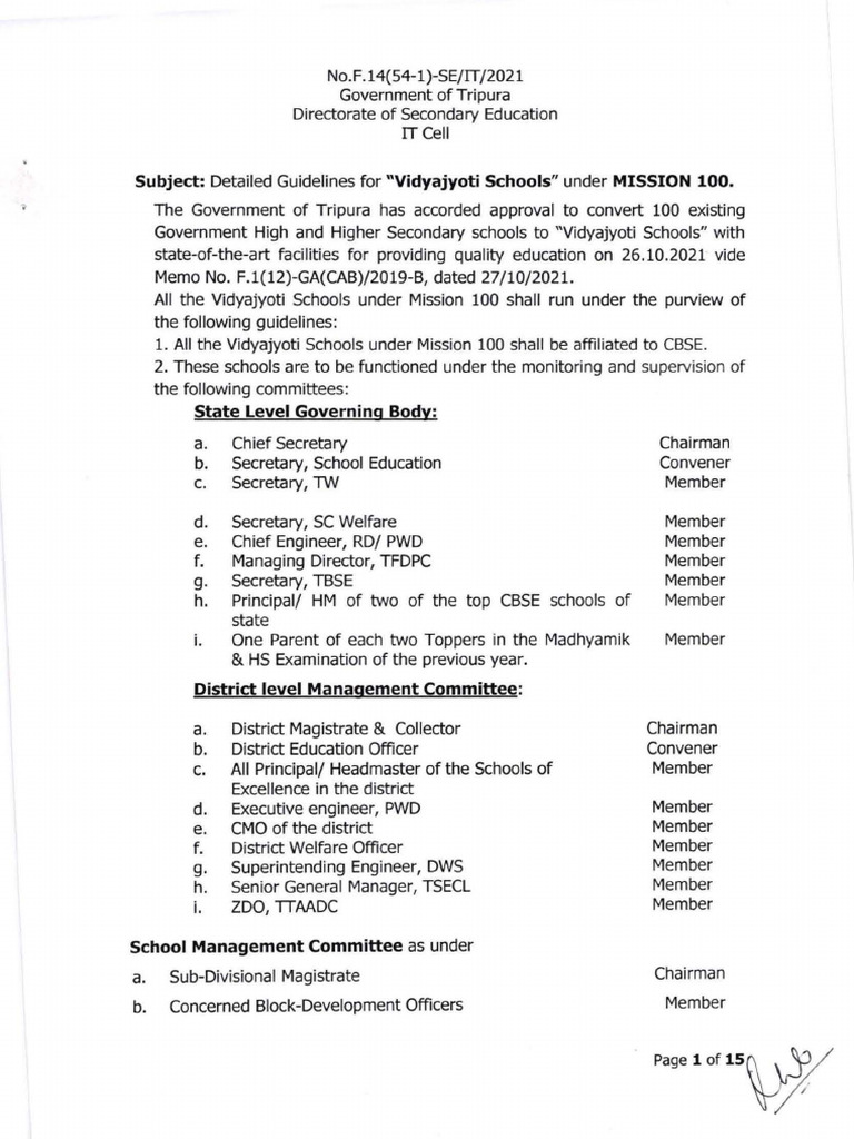 Guidelines for Tripura's Vidyajyoti Schools