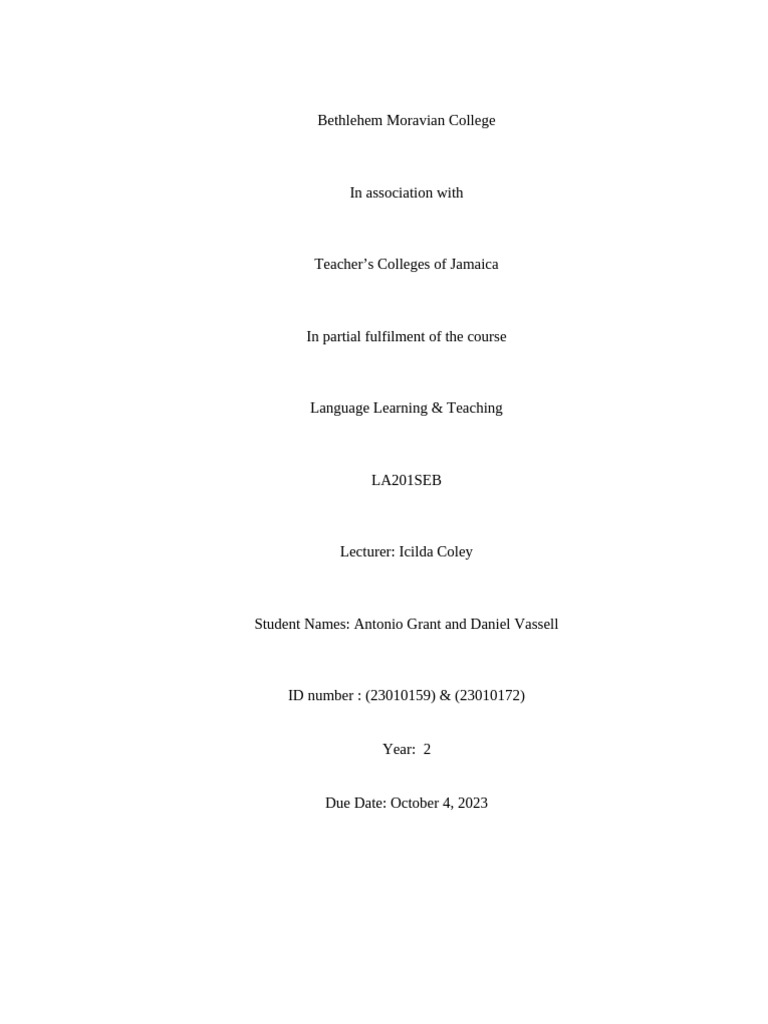 Student Names: Antonio Grant and Daniel Vassell