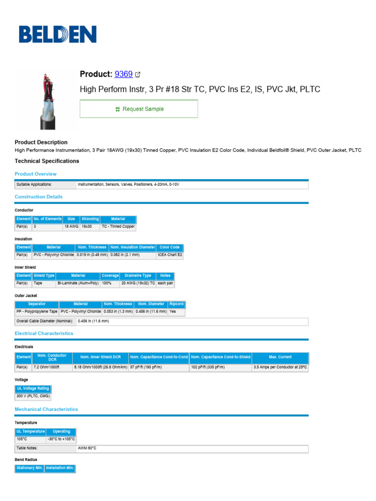 High Performance Instrumentation, 3 Pair 18AWG (19x30) Tinned Copper, PVC Insulation E2 Color Code, Individual Beldfoil® Shield, PVC Outer Jacket, PLTC