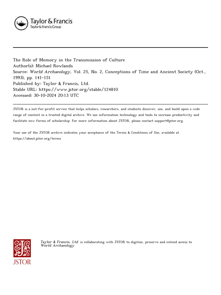 The role of memory in the transmission of culture 151