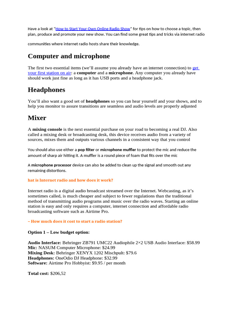 your first station on air: a computer and a microphone. Any computer you already have