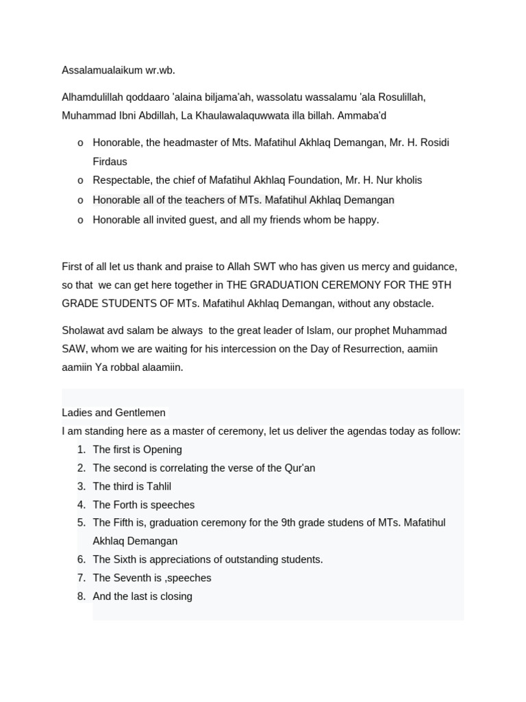 a. The first speech will be delivered by the Head Master of Mts. Mafatihul