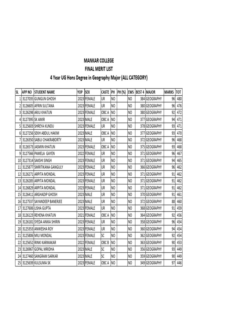 1 3127035 GUNGUN GHOSH 2023 FEMALE UR NO NO 384 GEOGRAPHY 96 480