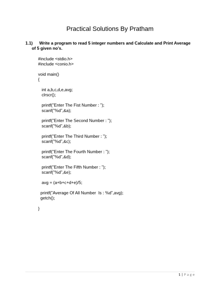1.1) Write a program to read 5 integer numbers and Calculate and Print Average