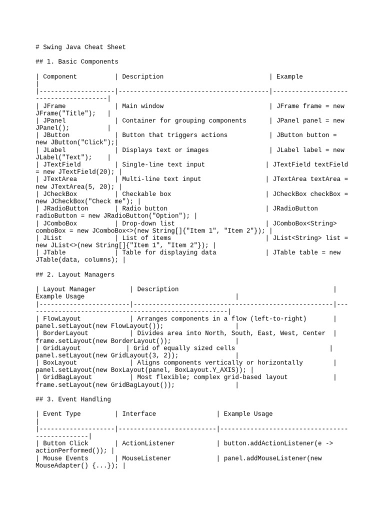 5. **Preferred Size**: Use setPreferredSize() for setting the size of components