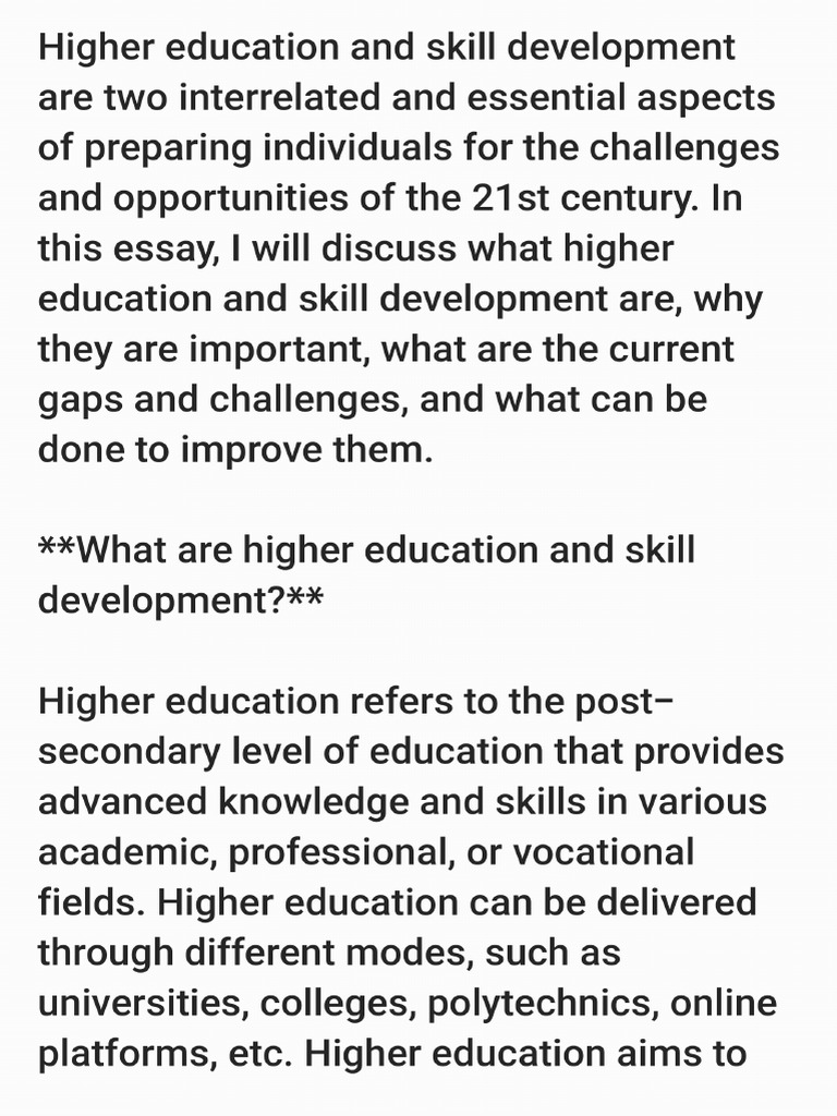 platforms, etc. Higher education aims todevelop the intellectual, personal, and