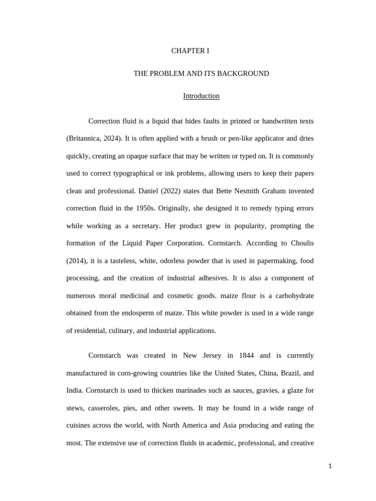 performance and usability of cornstarch-based correction fluids. The study will test