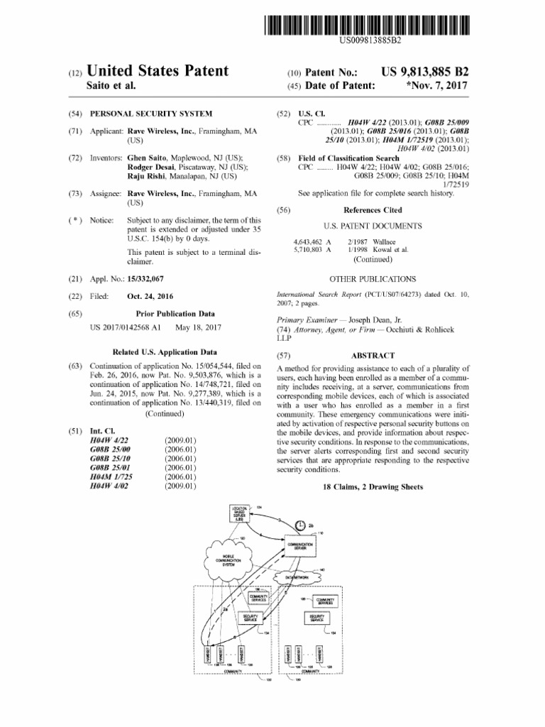 atent Nov . 7 , 2017 Sheet 1 of 2 US 9 ,813,885 B2