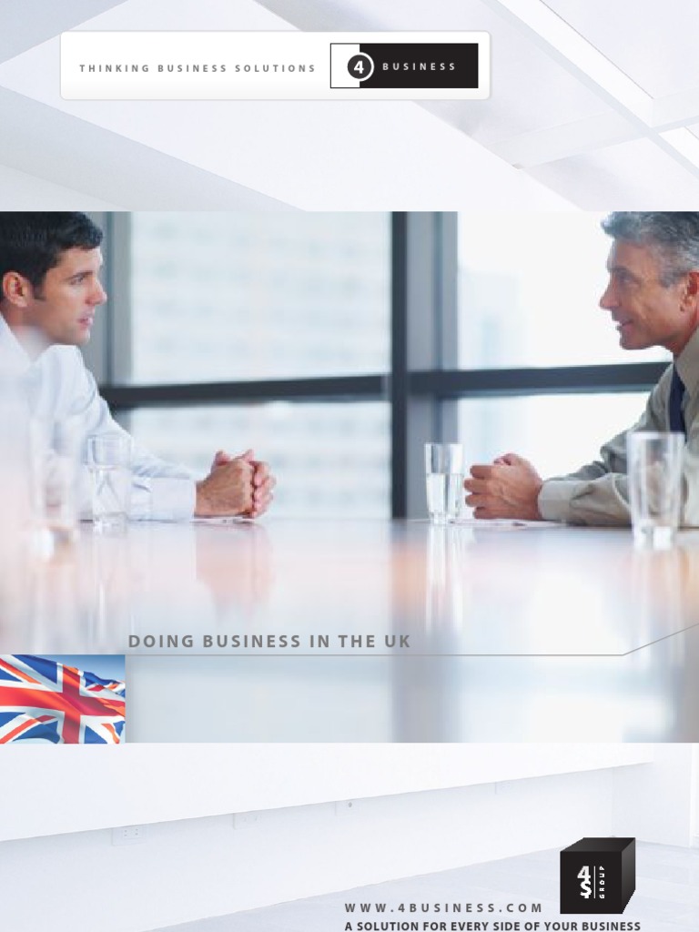 4 Business offers cost effective business solutions for companies and entrepreneurs wishing to establish a presence in the worlds fifth biggest economy and in London, the worlds leading international financial centre. The United Kingdom has an open economy in which international trade and investment plays a significant role. The export of goods and services accounts for approximately 27 percent of Gross Domestic Product (GDP). Economic prosperity is further enhanced by overseas businesses that make the United Kingdom their base for European and International business. More than 35 percent of all foreign investment in Europe is made in the United Kingdom which offers the best regulated market place, the best communication systems and the lowest rates of taxation. The 4 Business team based in Hanover Square in the Mayfair district of the West End of London, has particular expertise in the utilisation of United Kingdom business entities for British and European Market entry, International Trade and Investment and offers a comprehensive range of business support services for clients wishing to establish a base in London. For further information about Doing Business in Britain, please refer to Page 15 of this brochure for our office contact details.