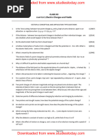 charge of 5 × 10–6 coulomb on the sphere. The string makes an angle of 30° with the vertical.