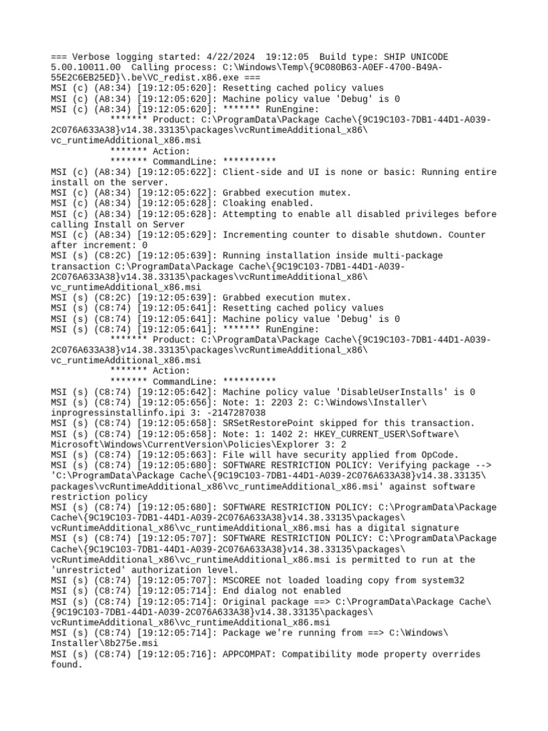 MSI (s) (C8:74) [19:12:07:521]: Product: Microsoft Visual C++ 2022 X86 Additional