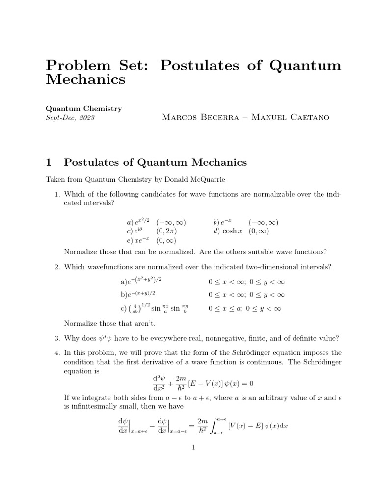1. Which of the following candidates for wave functions are normalizable over the indi-
