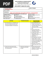 Catatan : Stop pekerjaan, jika didapati penyimpangan atau perubahan dari JSA ini untuk di diskusikan lebih lanjut dengan semua departemen yang terlibat.