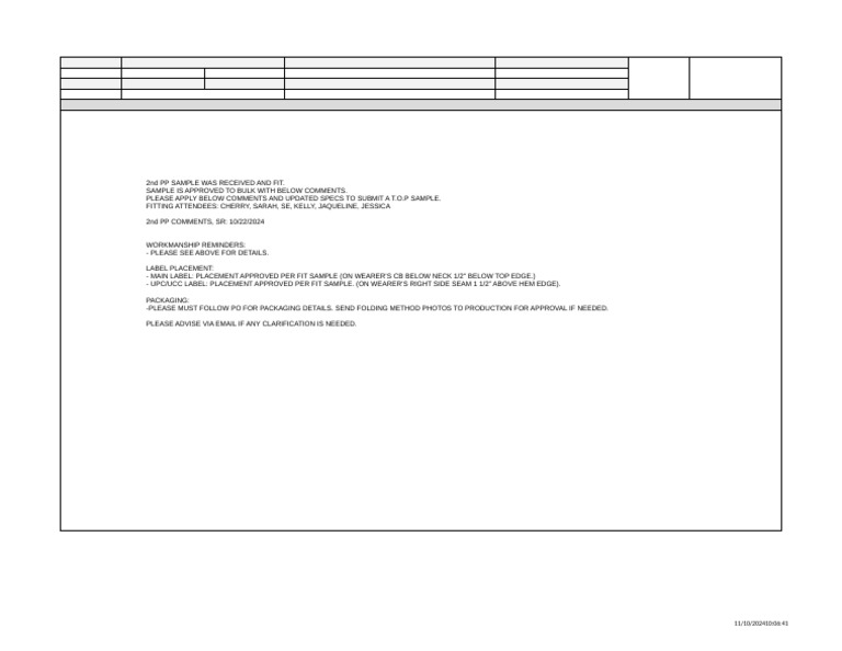 2nd PP SAMPLE WAS RECEIVED AND FIT.