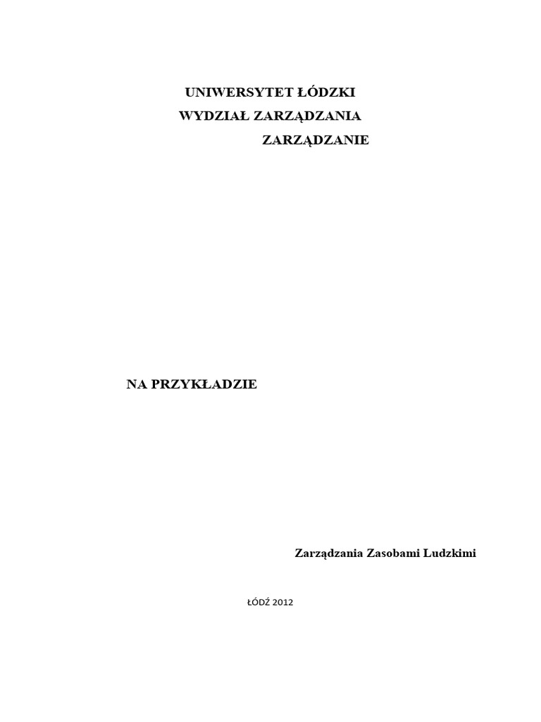 Uniwersytet Łódzki Wydział Zarządzania Kierunek - Zarządzanie