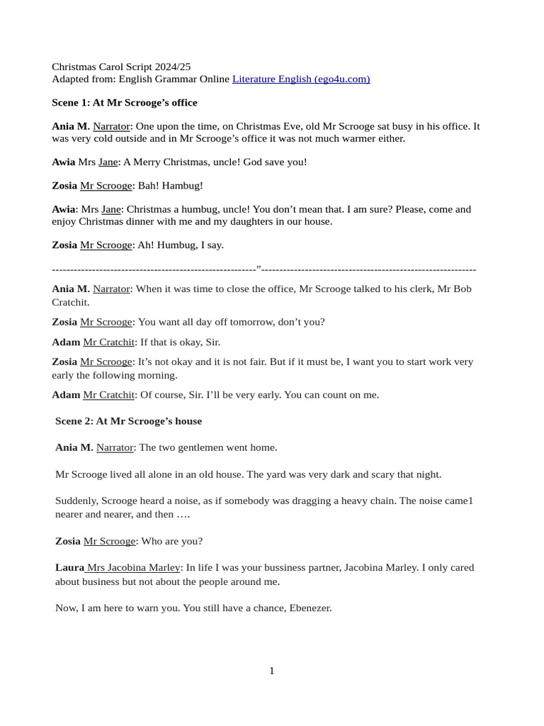 Ania M. Narrator: Mrs Marley’s soul disappeared. Mr Scrooge went straight to bed, without