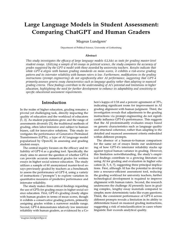 grading and the essays exist in the public domain. guage of the student assignments. Recent research