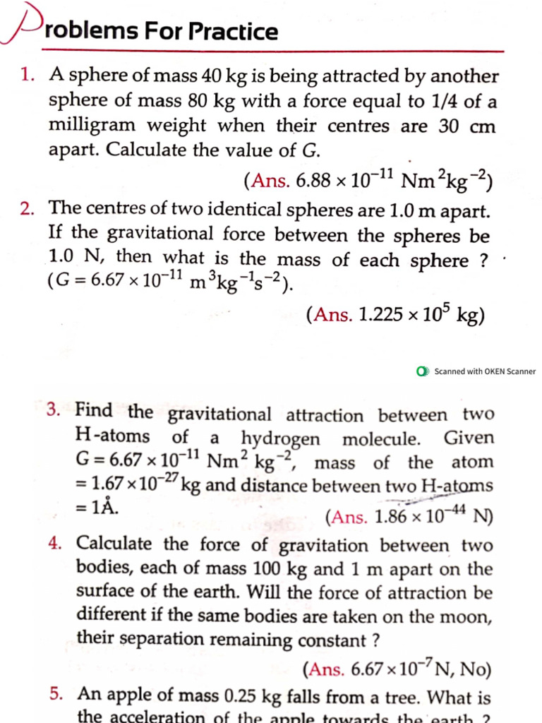 © scanned with OKEN Scanner3. Find the gravitational attraction between two