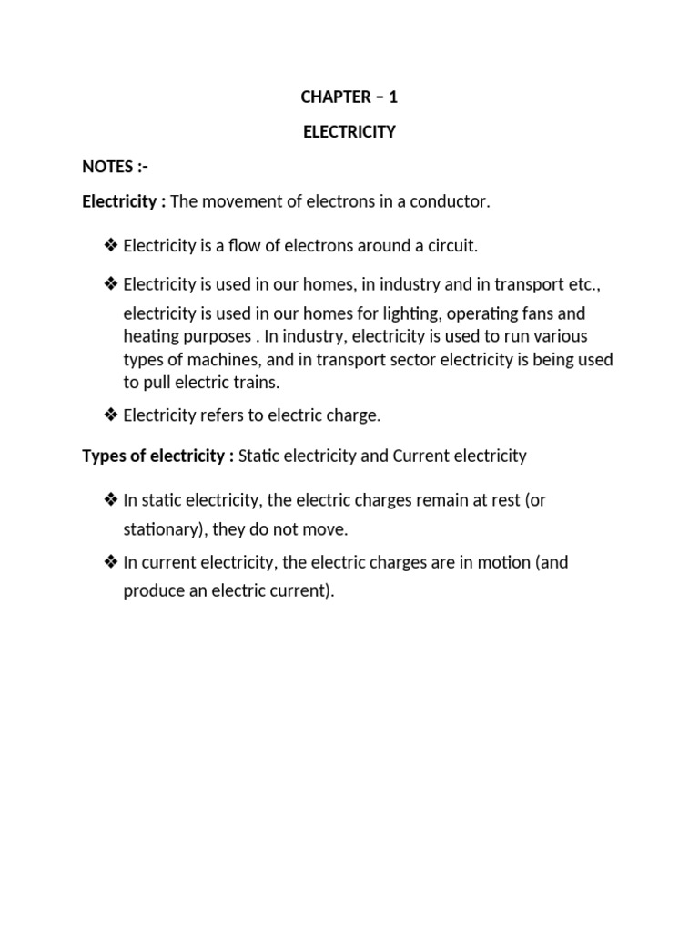 ❖ Electricity is used in our homes, in industry and in transport etc.,
