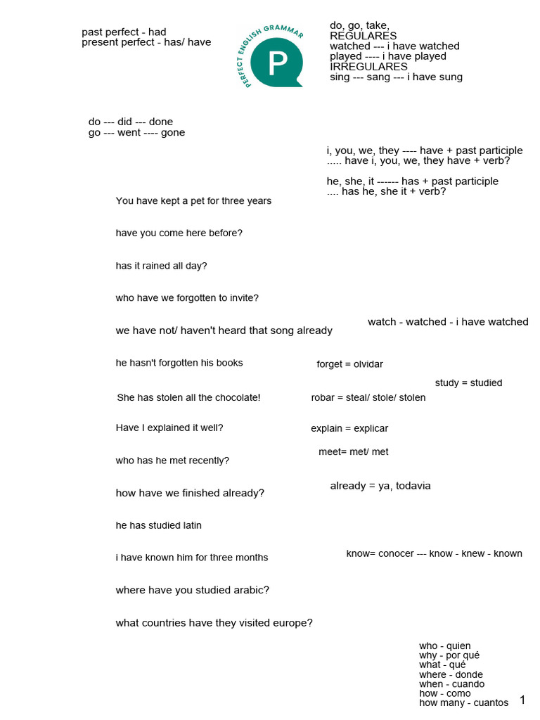Make the present perfect: positive, negative or question. i, you, we, they ---- have + past participle