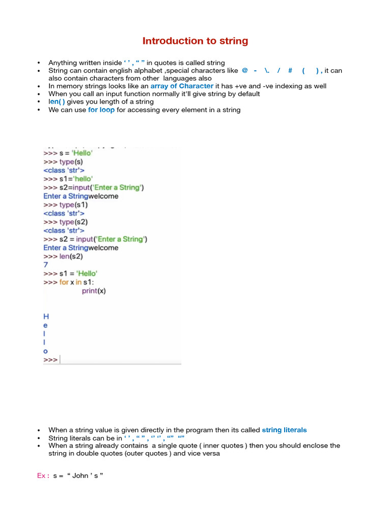 • String literals can be in ‘ ’ , “ ” , ‘’ ‘’ , “” “”