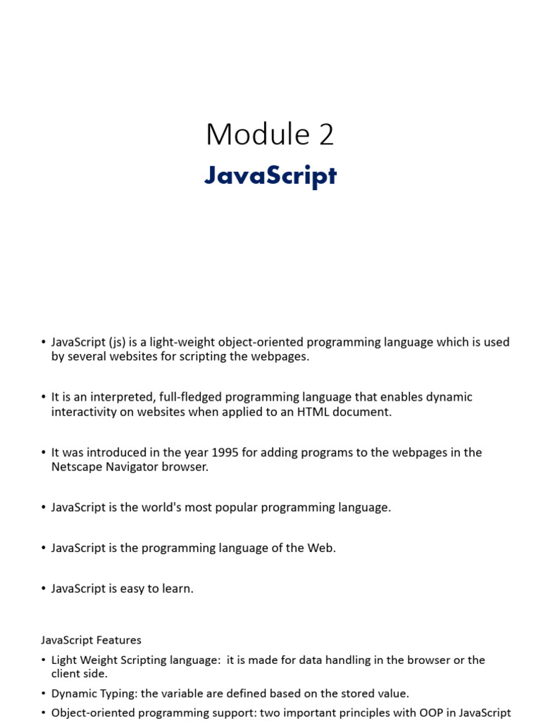 • Object-oriented programming support: two important principles with OOP in JavaScript