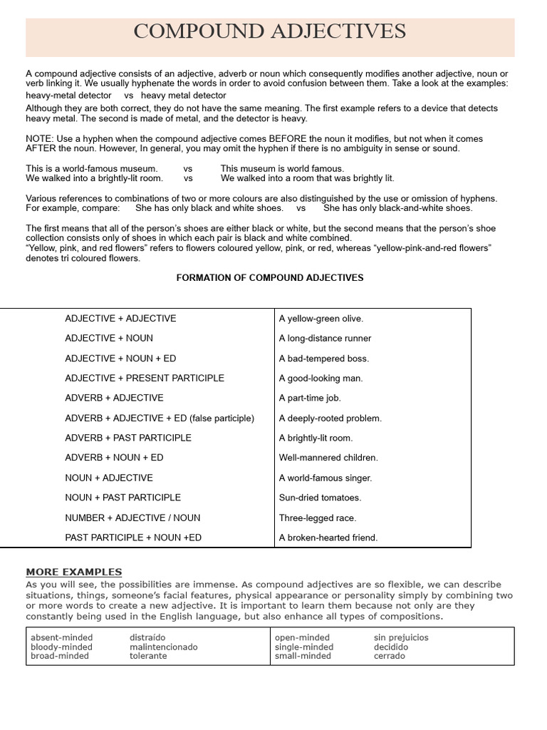 As you will see, the possibilities are immense. As compound adjectives are so flexible, we can describe