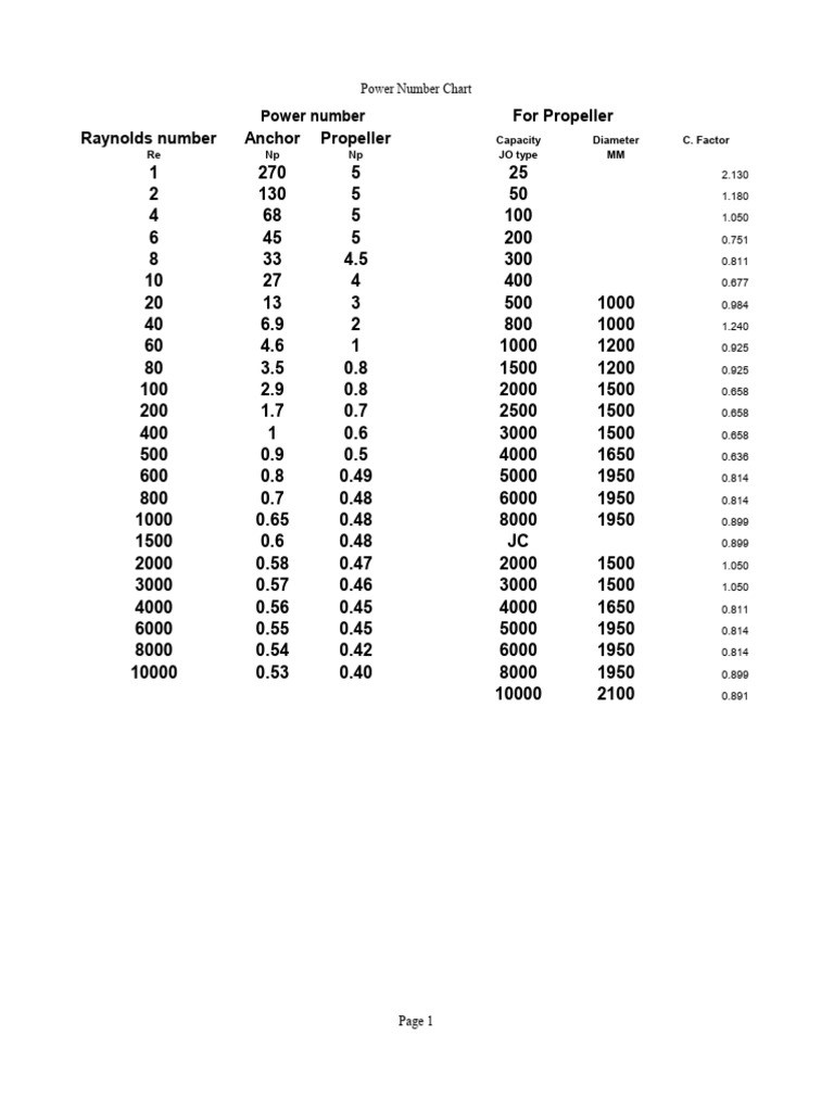 Raynolds number Anchor Propeller Capacity Diameter C. Factor