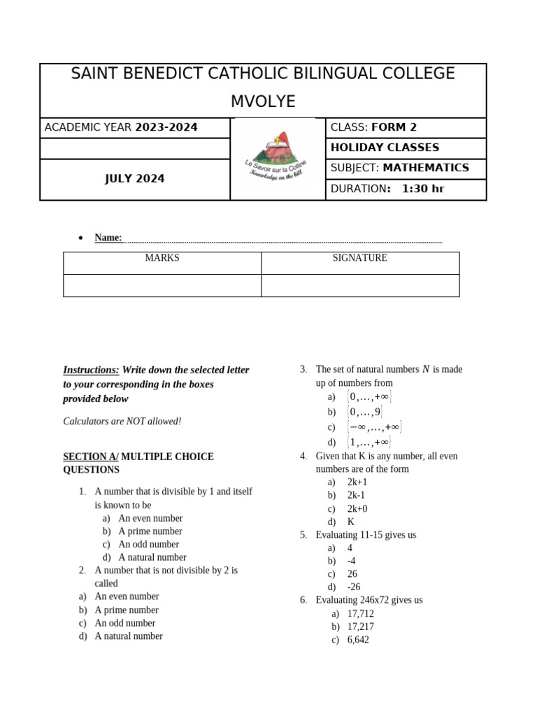 ACADEMIC YEAR 2023-2024 CLASS: FORM 2