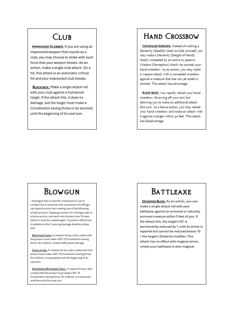 simple poisons. Applying a poison to a blowgun dart is battleaxe against an armored or naturally