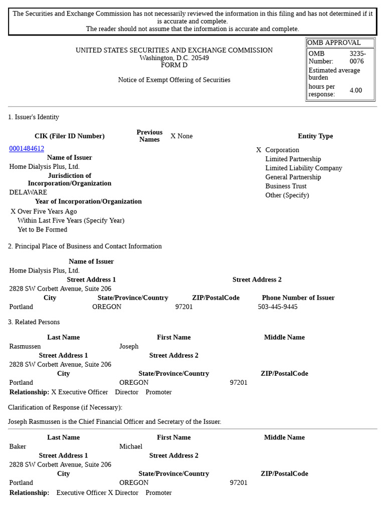 Home Dialysis Plus, Ltd.