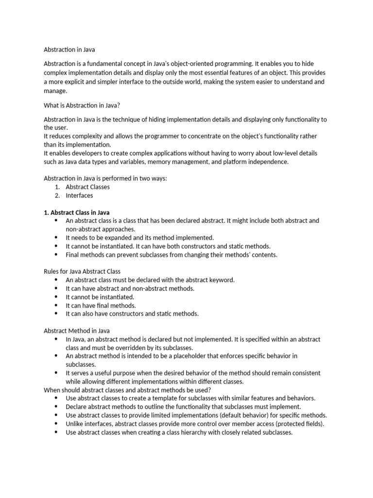 Abstraction is a fundamental concept in Java's object-oriented programming. It enables you to hide