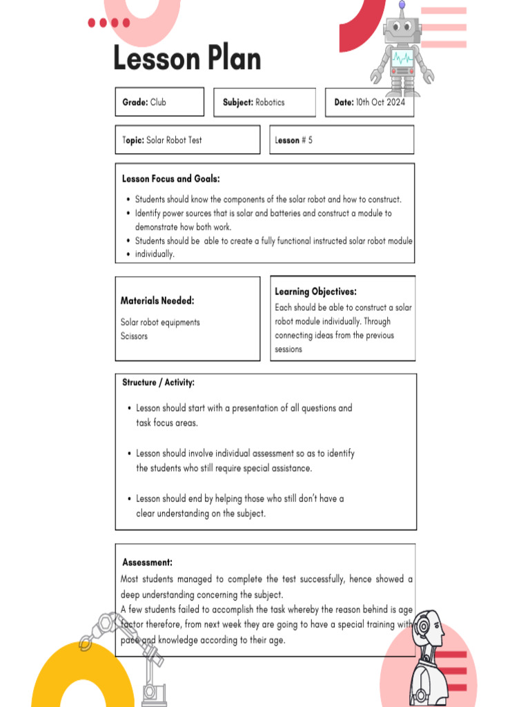 Grade: Club Subject: Robotics Date: 10th Oct 2024